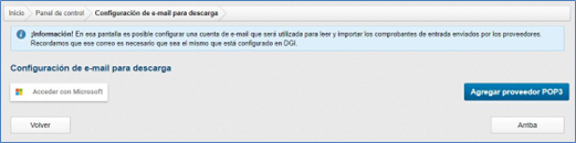 Esta opción será exhibida al usuario cuando la cuenta POP3 es de Microsoft. Así, al poner un clic en esa opción InvoiCy elimina la cuenta Microsoft de la aplicación, así se puede configurar otra cuenta o mismo utilizar una cuenta de otro proveedor POP3.