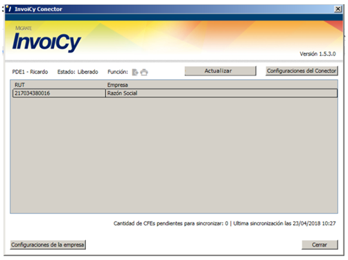Aún tendrá disponible la opción para actualizar manualmente el Conector desde la opción “Actualizar”, desde el equipo que está instalado el InvoiCy Conector.