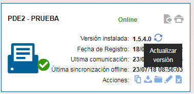 El proceso de actualización podrá ser hecho en cada PDEs desde la opción “Actualización versión”. Una ves hecho el clic en esa opción no podrá mas ser solicitado la actualización ya que el conector empezará el proceso de actualización.