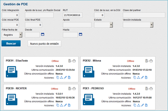 Además de los filtos ya disponibles en [Puntos de Emisión] (https://invoicy.com.uy/Sistema/Digitacion/Puntos_Emision.html){target="_blank"}, podrá hacer filtros por Código de Integración, Apodo de la sucursal o Casa Principal, PDEs vinculados a un RUT o por una clave del socio específica (cuando hay más de una).