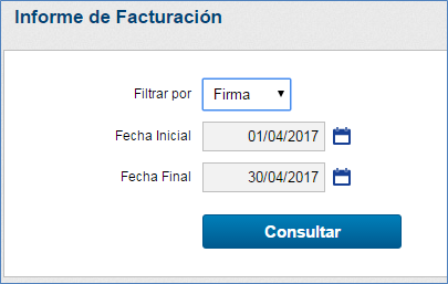 Para generar el informe es necesario completar el filtro de fecha que desea hacer, si desea generar el informe por fecha de firma de los comprobantes y por fecha de emision de los comprobantes (con el filtro de fecha de emisión solo se generará los totales). Luego seleccione en los campos “Fecha Inicial” con la fecha de inicio deseada para el informe y el campo ”Fecha Final” con la fecha final del informe.