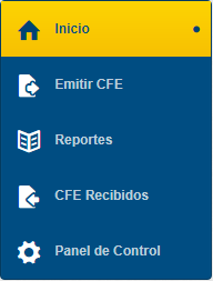 Todas las pantallas de InvoiCy presentan un menú lateral, para que se facilite la navegación entre las páginas del sistema, como muestra la siguiente imagen.
