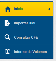 Después del login, estará disponible el acceso a los datos de los comprobantes importados en InvoiCy Web. La pantalla de administración de InvoiCy Web está dividida entre los menús: Inicio, Importar XML, Consultar CFE e Informe de Volumen. Vea Módulo InvoiCy Web para más detalles.