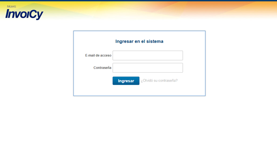 En la parte superior derecha de la pantalla está el botón de login, que está destinado a la administración del módulo InvoiCy Web, por todos los usuarios que tienen permiso de acceso a esta pantalla.