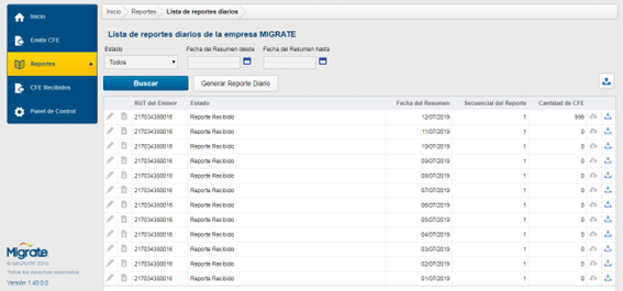 InvoiCy también está preparado para generar y enviar a la DGI el Reporte Diario, conteniendo todos los CFE emitidos en el día anterior. De acuerdo a las exigencias de la DGI, el reporte debe ser enviado diariamente aun los días en que no se haya emitido ningún CFE.