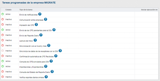 En la pantalla de Tareas Programadas hay el listado de todas las tareas que son ejecutadas automáticamente por InvoiCy.