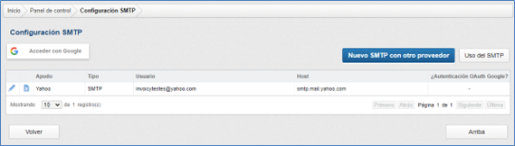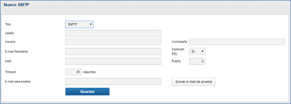 La opción de configuración SMTP posibilitará al administrador configurar un o más configuraciones SMTP de distintos correos electrónicos para uso general en el sistema.