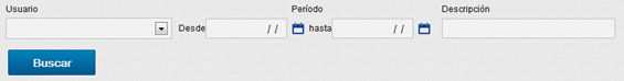 Esa pantalla puede ser filtrada por Usuario, Períodos Inicial y final y la Descripción del log.