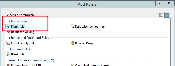 - Seleccione "Blank rule" en Inbound rules y haga clic en el botón OK.