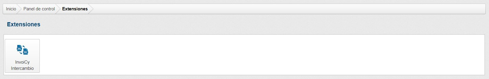 A través de esta pantalla, el usuario podrá activar o desactivar el uso de la extensión 'InvoiCy Intercambio', así como de futuras extensiones en la instalación InHouse.