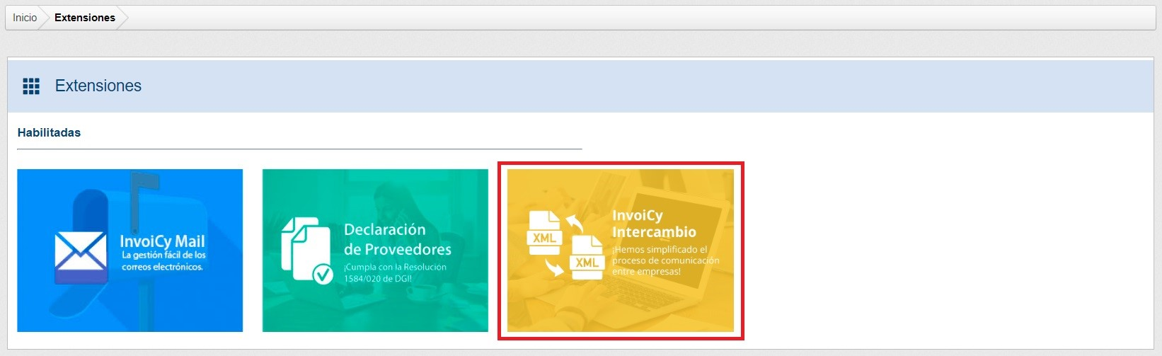 En esta pantalla se mostrarán todas las extensiones disponibles en InvoiCy, las cuales podrán ser habilitadas según el contrato comercial del socio.