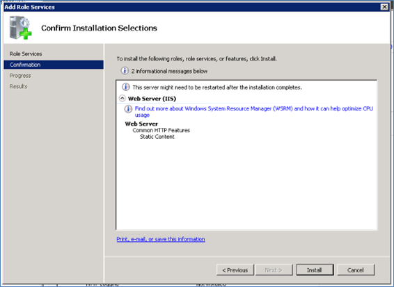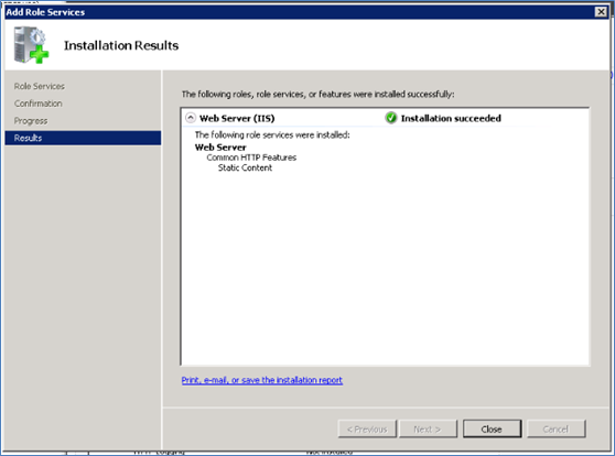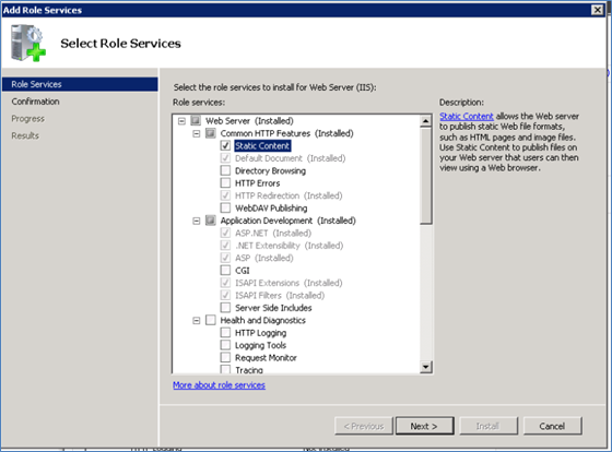 En seguida haga clic en “Add Role Services”, que está localizado a la derecha del panel que contiene el ítem “Static Content”.