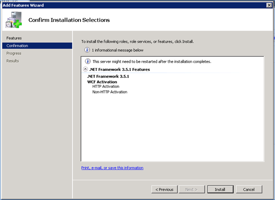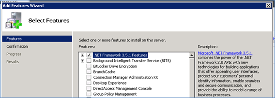 Junto con “Static Content” será necesario también tener el ítem “.NET 3.5.1 Features” instalado, para eso haga clic en “Features”, que se encuentra inmediatamente abajo del ítem “Roles”, en el cual hizo clic anteriormente.