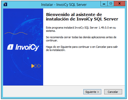 Para realizar la instalación de InvoiCy ejecute el archivo “InvoiCy_Setup_vX.X.X.X_MSSQL.exe”, como muestra la siguiente imagen. Donde X.X.X.X es la versión de InvoiCy.
