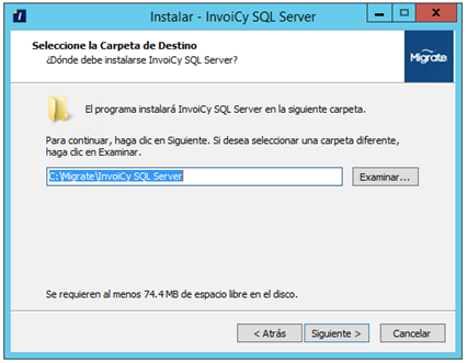 Después de seleccionar la carpeta deseada haga clic en el botón “Siguiente” para proseguir con la instalación.