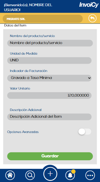 Después de completar todos los campos, simplemente haga clic en la opción “Guardar” para almacenar la información. A partir de ese momento, el ítem estará disponible para ser seleccionado durante la digitación del CFE en la aplicación Mobile.