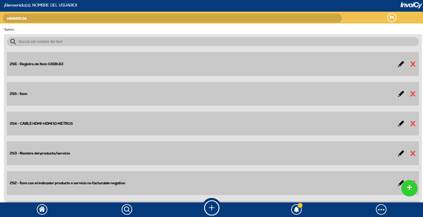 Al acceder a la pantalla de “Items”, se podrán visualizar todos los ítems ya registrados. Es posible editar un ítem mediante el ícono del lápiz o eliminarlo utilizando la opción “x”.