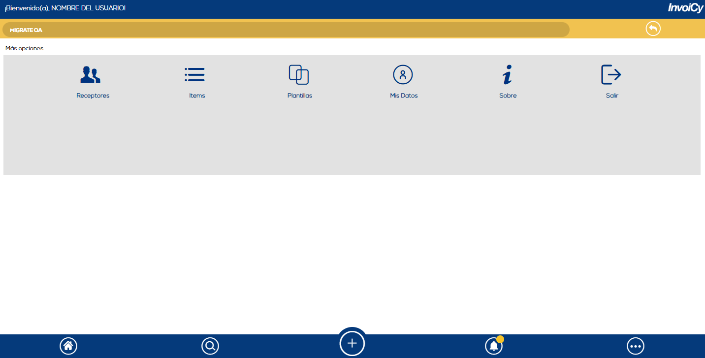El acceso a la pantalla de Items se encuentra en la sección “Más opciones”, la cual puede ser abierta a través del botón “…” ubicado en el menú inferior de la aplicación.